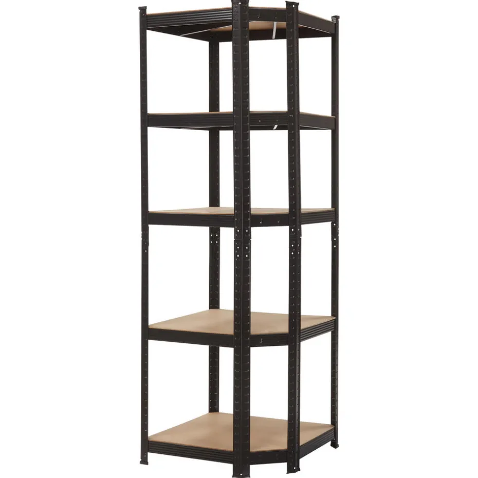 Opbergrek Verzinkt is gemaakt van 100% metaal en MDF planken. Dit opbergrek met een hoek heeft de kleur zwart en een afmeting van 60x45x180 cm (lxbxh).