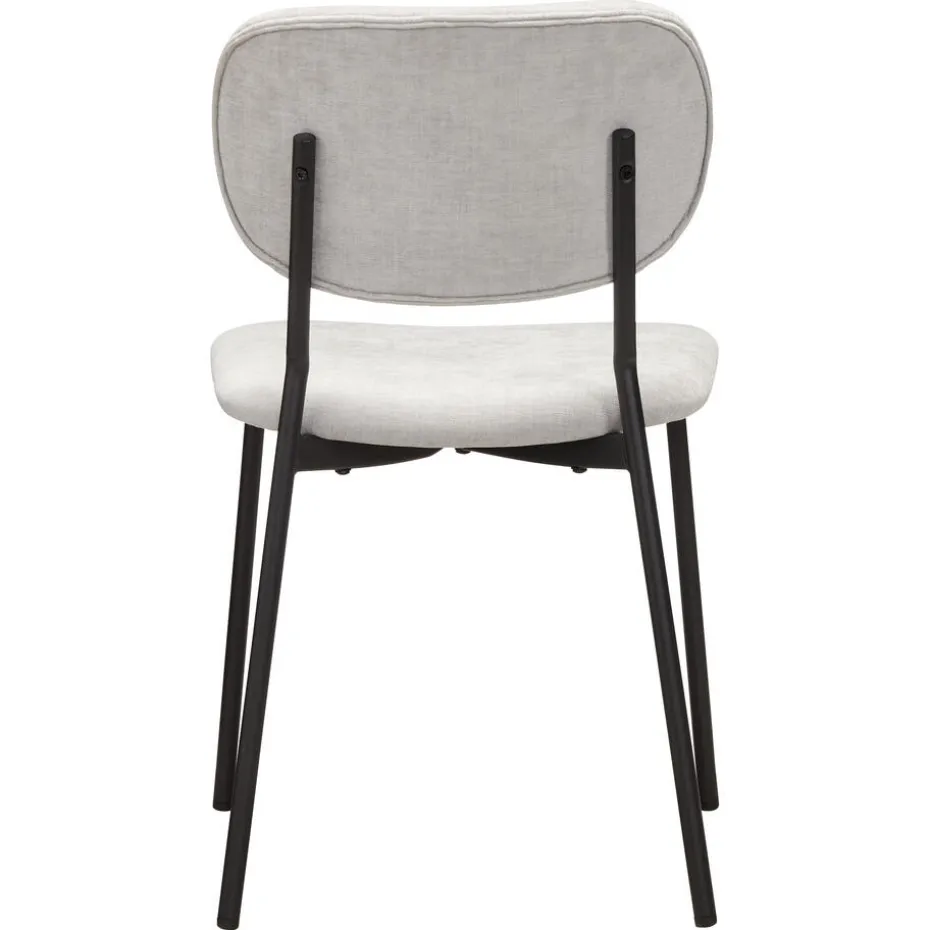 Stoel Desulo is een lichtgrijze eetkamerstoel met een stoffen bekleding. Door de metalen poten en het strakke design heeft de stoel een moderne uitstraling. De stoel heeft een zithoogte van 45 centimeter en is gemaakt van 100% polyester.