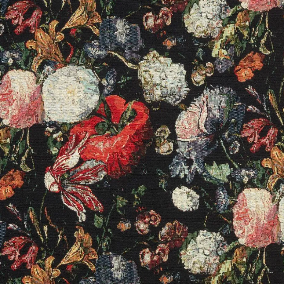 Stof met bloemendessin en antiek-look. Krimpvrij en kreukherstellend. 45×45 cm (lxb).