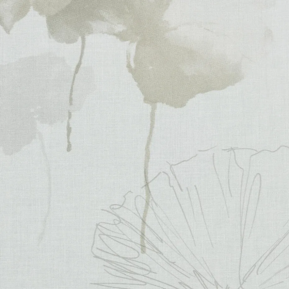 Vitrage Aukje in een witte kleur. Deze stof heeft een hele subtiele print van grijze bloemen. Gemaakt van 100% polyester. Patroonhoogte is 64 centimeter.