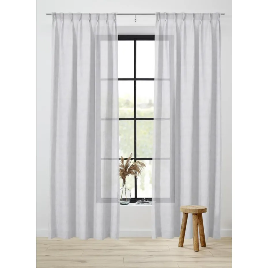 Vitragestof van soepelvallend wit materiaal. Stevig en kreukherstellend. 150 cm hoog.