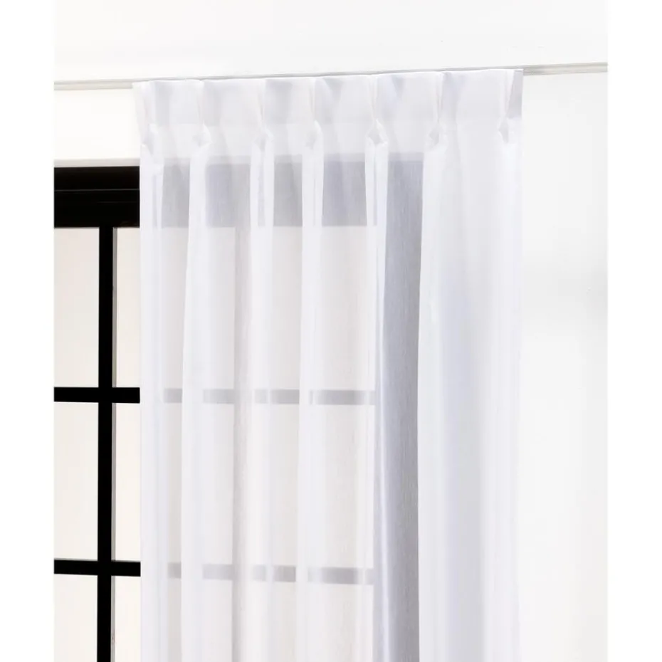 Vitragestof van soepelvallend wit materiaal. Stevig en kreukherstellend. 300 cm hoog.