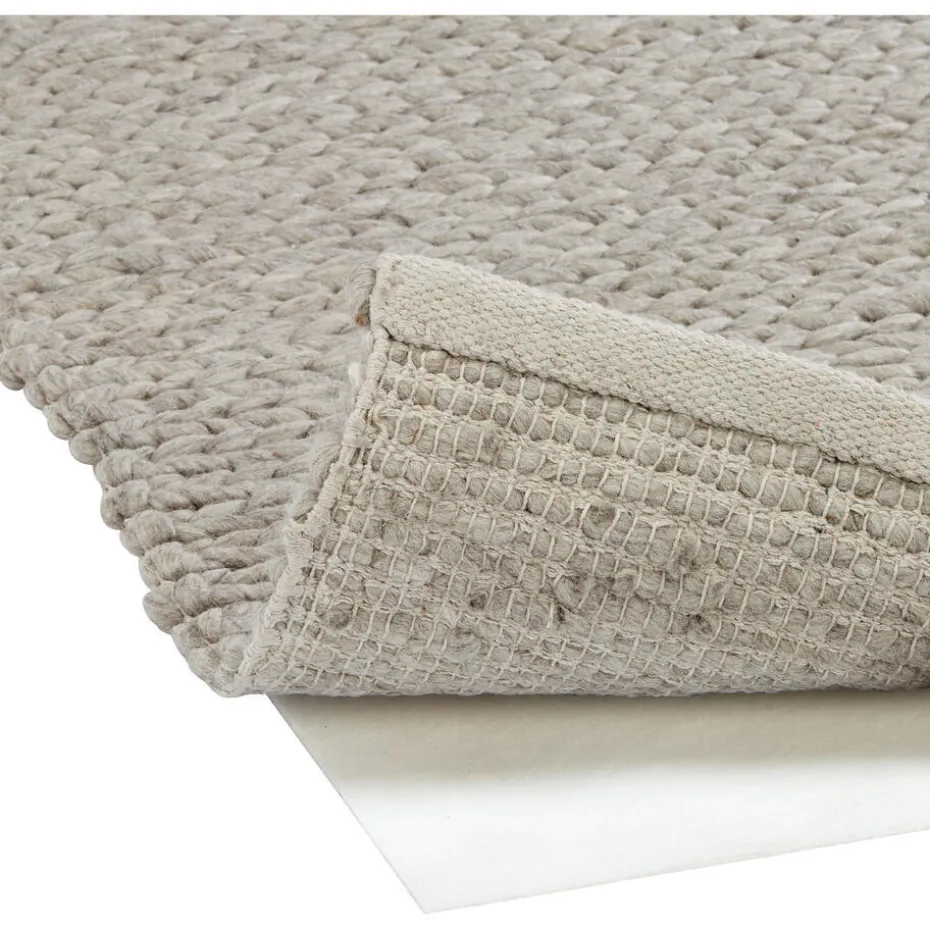 Handgemaakt en grof geweven wollen vloerkleed met greige kleur. Comfortabel, sterk, natuurlijk en slijtvast. 160×230 cm (bxl).
