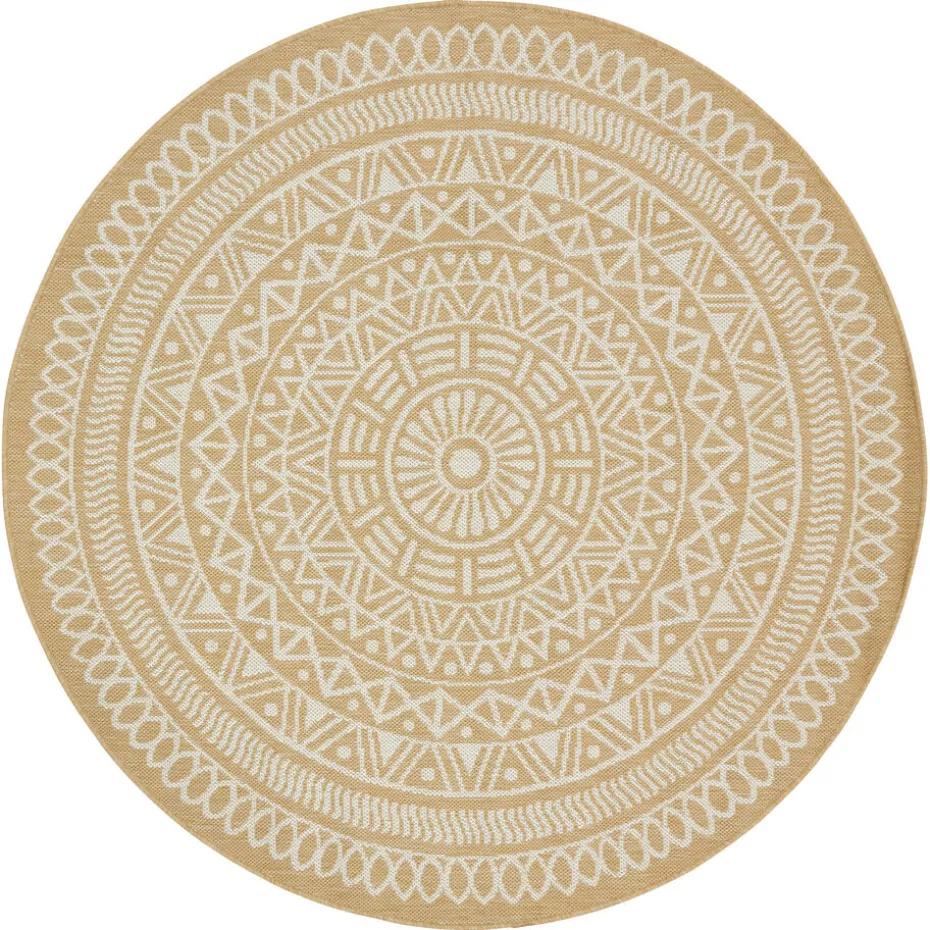 Rino is een rond vloerkleed die stijl en warmte toevoegt aan elke kamer. Met zijn zand kleur en opvallende Aztec print geeft dit vloerkleed een eigentijdse touch aan je interieur. De laagpolige textuur zorgt voor comfort en maakt dit kleed perfect geschikt voor drukbezochte ruimtes.